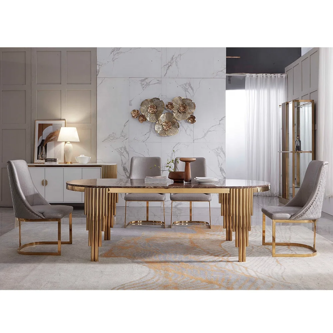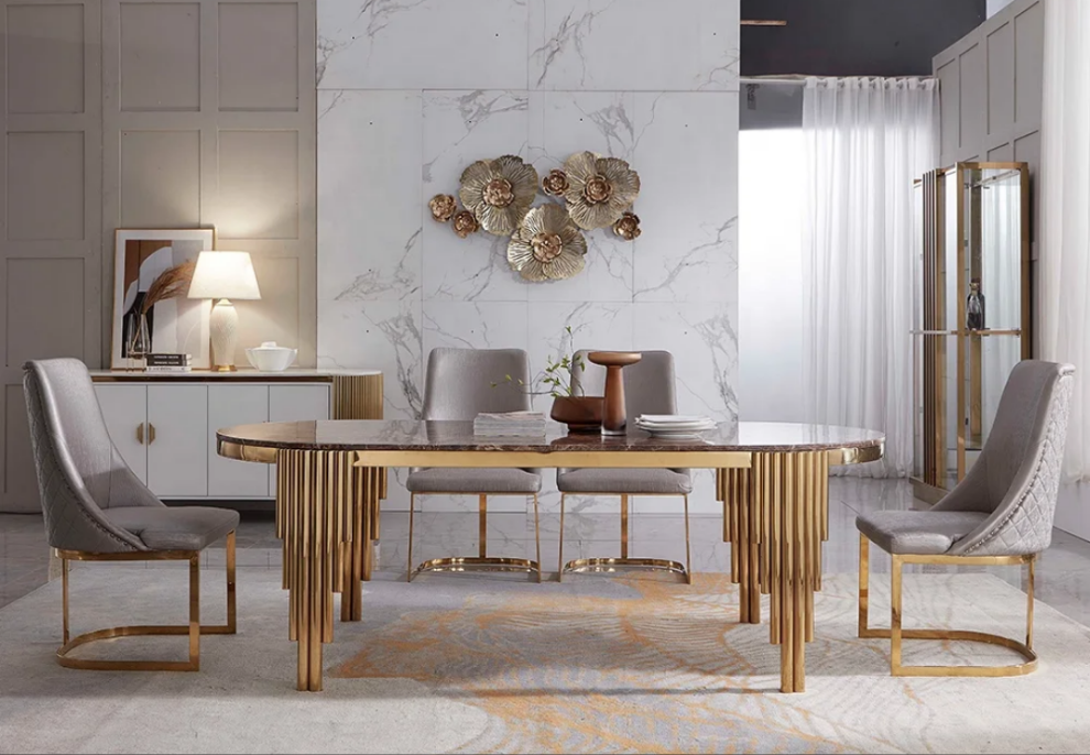 Upgrade your dining experience with the Azra Luxe 6 Seater Dining Set. Made for entertaining, this beautiful set comfortably seats six and adds a touch of luxury to any space. Enjoy gatherings with family and friends in style with this elegant and spacious dining set.