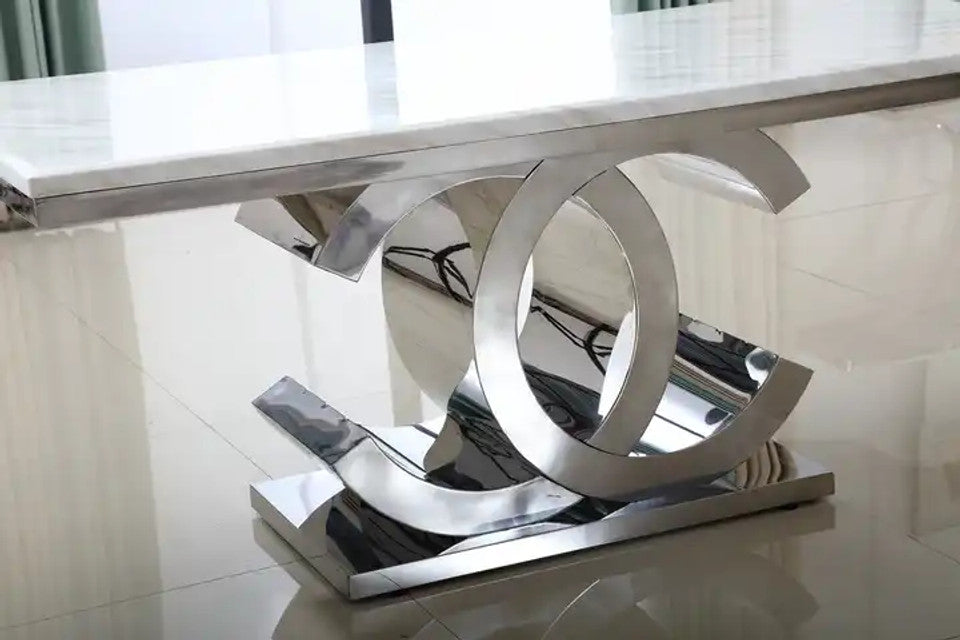 Indulge in the opulence of the Chanel 6 seater dining set. Featuring a luxurious designer marble top table complemented by elegant Giselle dining chairs, this set is the epitome of sophistication and style. Elevate your dining experience with this exclusive set.