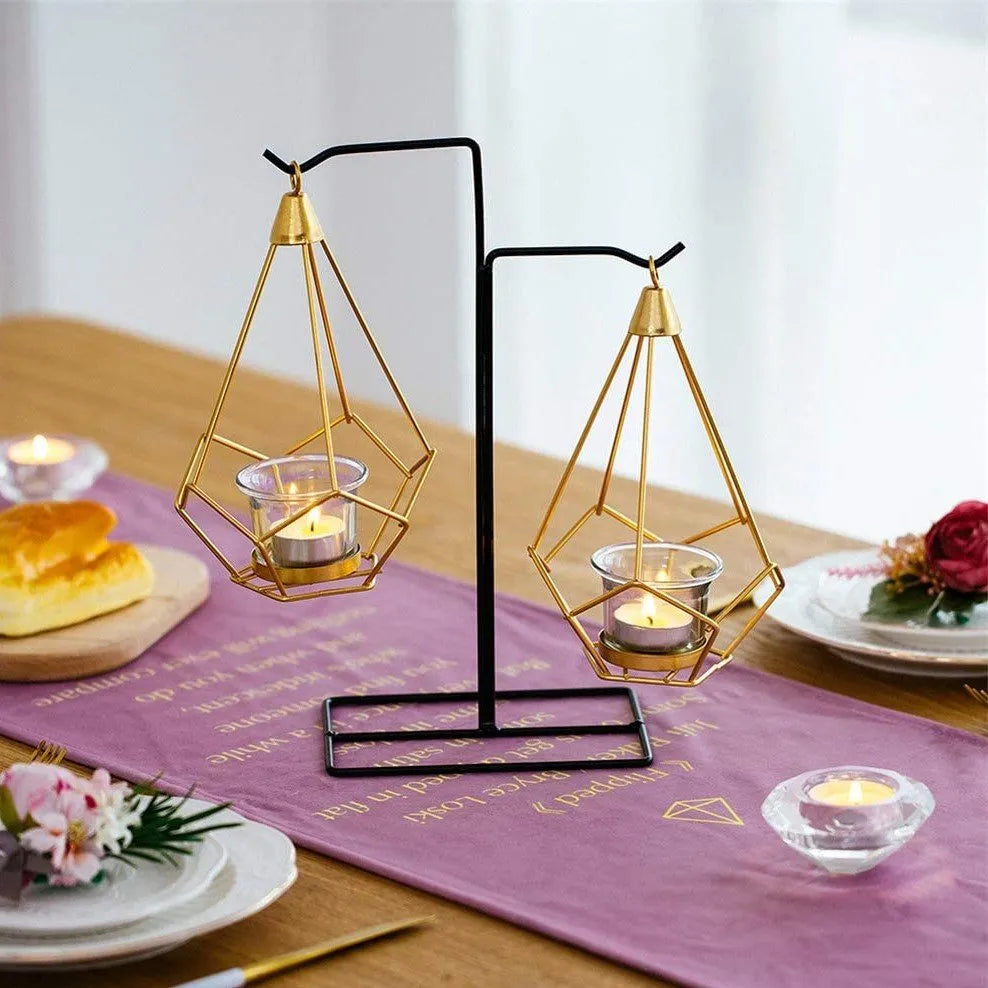 This geometric diamond design candle holder is unique as it has double holders with a dual-hook stand making your center piece look even more attractive.