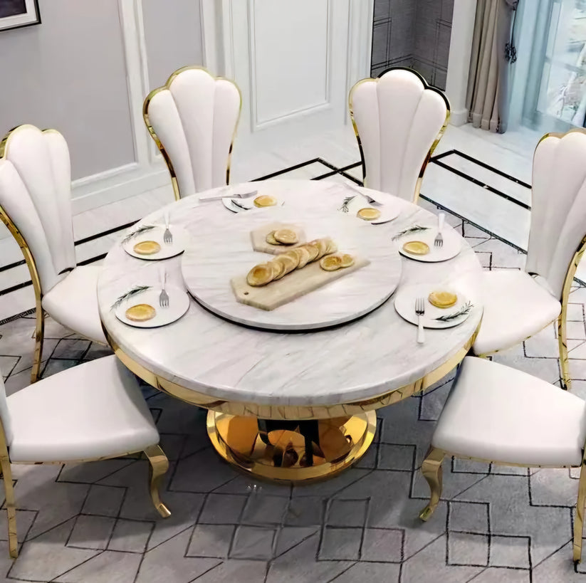 Enhance your dining experience with the Isadora Dining Set. This elegant set features a stunning marble top, adding a touch of sophistication to your space. Elevate your meals and gatherings with this beautiful addition to your home.