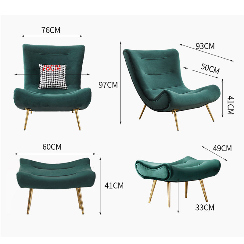 Elevate your lounging experience with our 2-piece Milano luxe lounger. Made of luxury velvet material, its ergonomic design provides superior back comfort while the matching ottoman allows you to rest up your feet. Indulge in ultimate relaxation and style with this luxurious lounger. Perfect for curling up with a good book or your next Netflix binge. Comfortable, Unique and Glamorous, it will enhance any modern style living room, bedroom or beauty room.