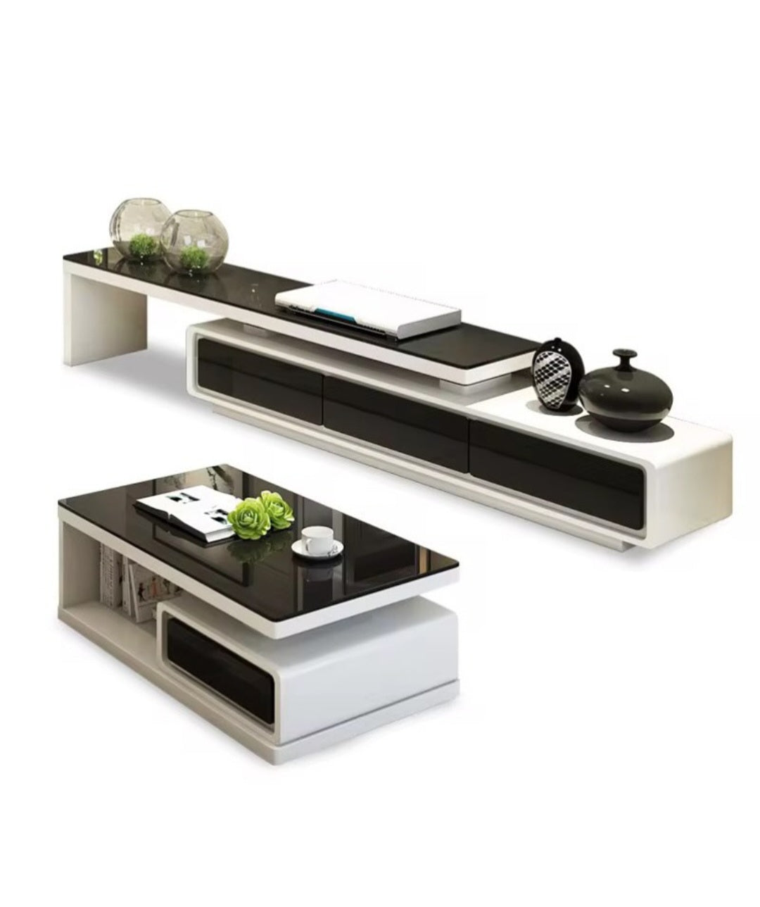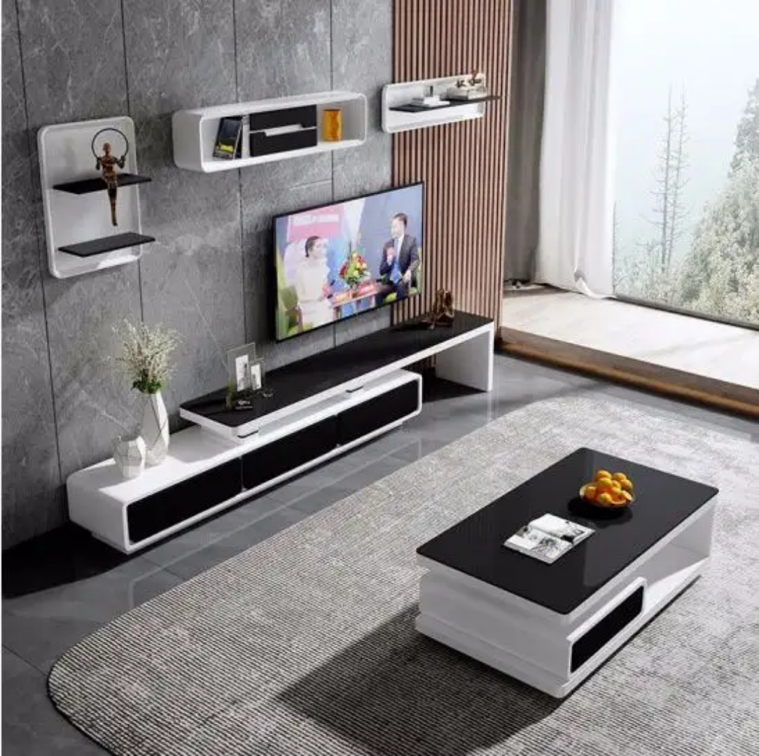 Enhance your living space with our Palma TV stand and coffee table set. Featuring a classic contemporary design, this high gloss white set includes a sleek black tempered glass for added elegance. With ample storage options, it's both functional and beautiful. Elevate your home decor with this must-have set.