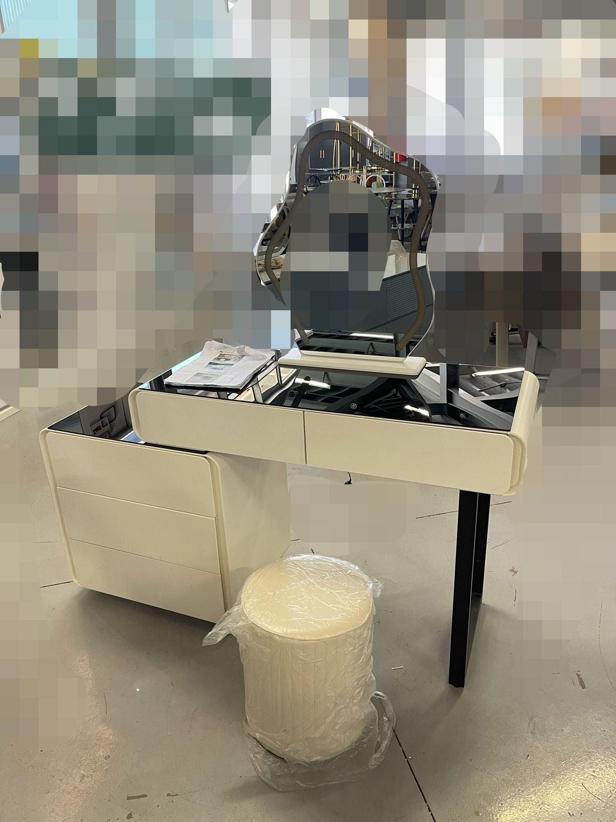 Upgrade your beauty routine with the Rio Vanity Set. This high gloss black and white set features a sleek design with a LED mirror and comfortable ottoman. Perfect for applying makeup or getting ready for your day, this set is a must-have for any beauty enthusiast. Elevate your space and enhance your daily routine with the Rio Vanity Set.