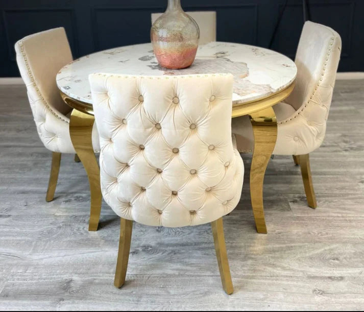 Indulge in luxury with the Valeo luxe dining chair. Its deep button back design and studded detailing exude elegance while the chrome metal legs ensure durability. The sumptuous velvet upholstery adds a touch of opulence to any modern interior.